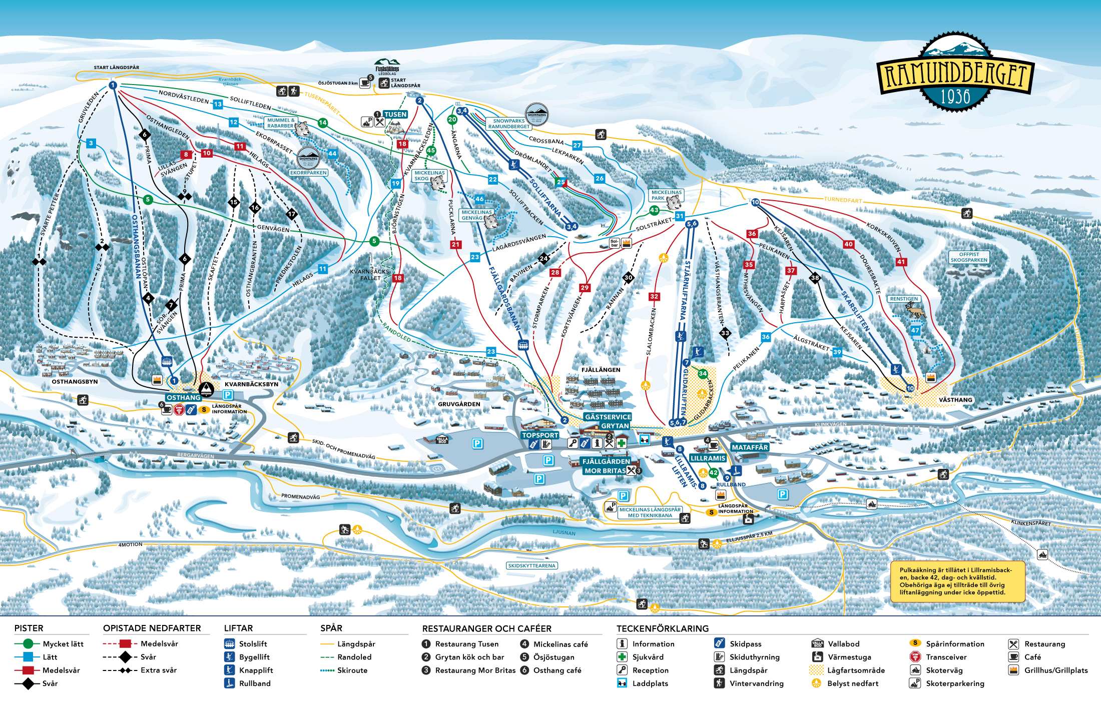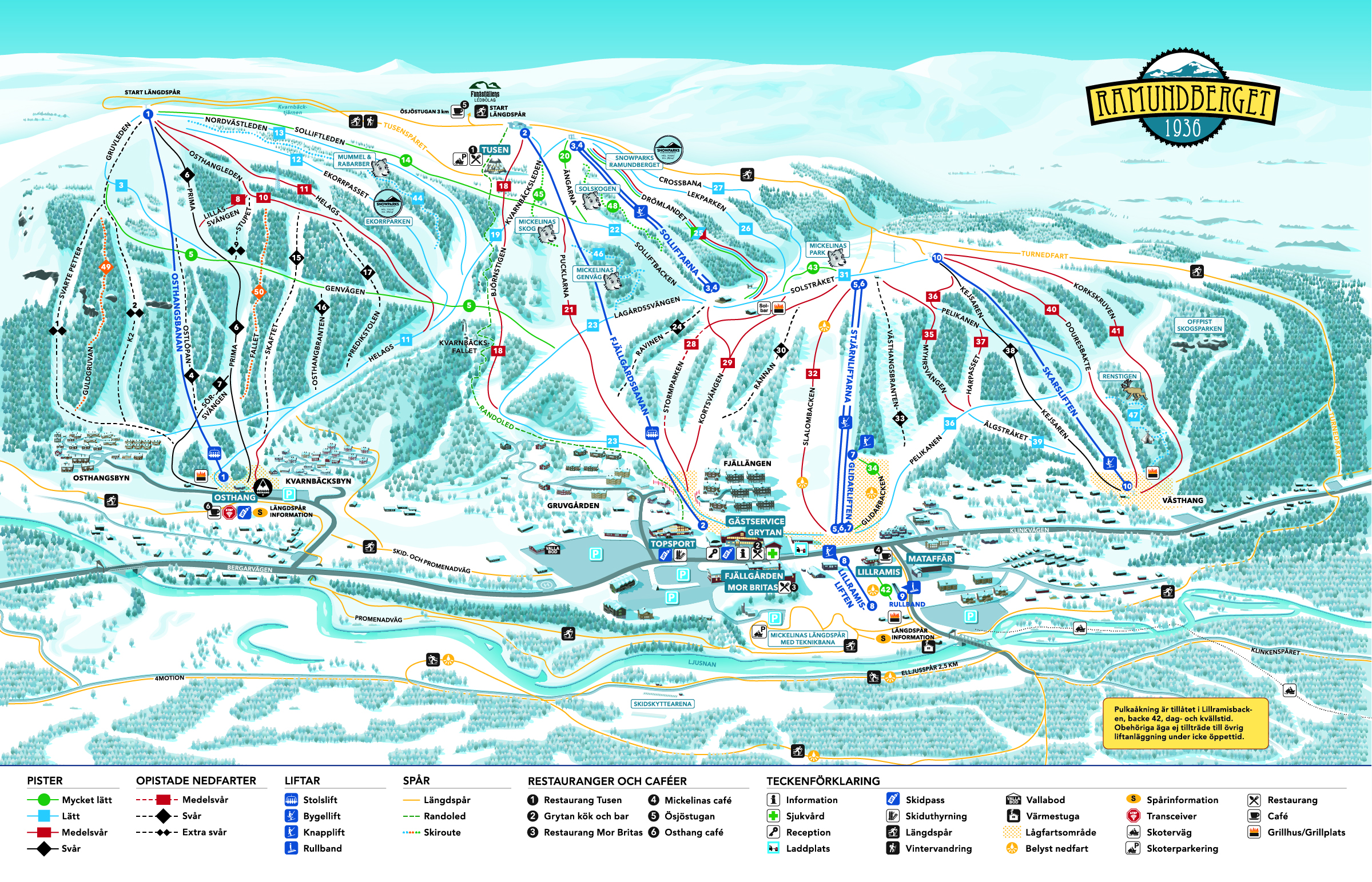 Se alla backar och hela skidsystemet med restauranger och grillplatser på pistkartan.