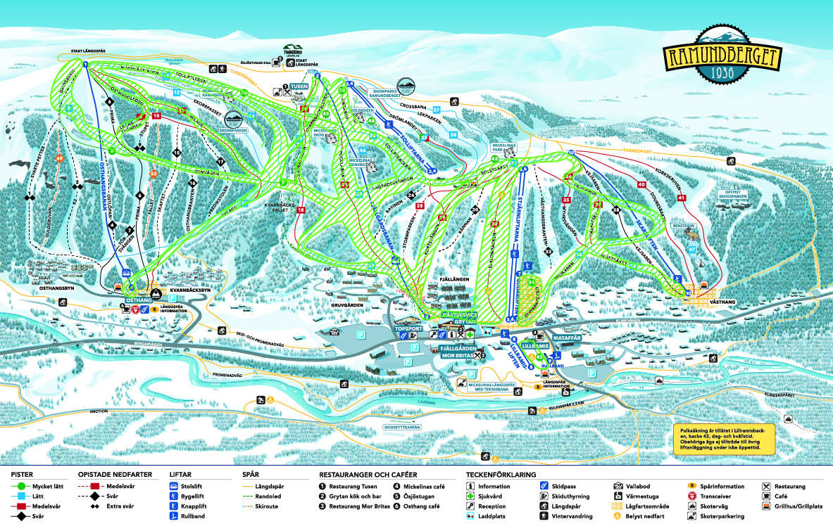 Äntligen är det dags för öppning! Vi erbjuder åkning i 21 nedfarter. Packa skidorna så ses vi vägs ände!