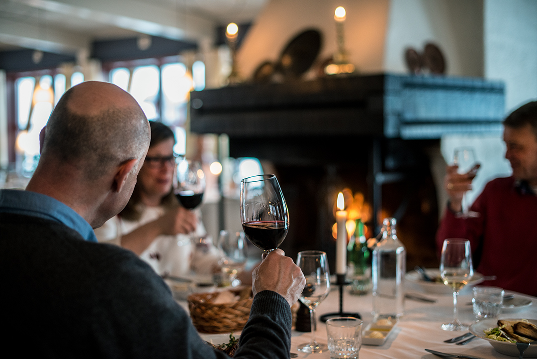 Middag: 3-rätters middag med rekommenderat vinpaket.
